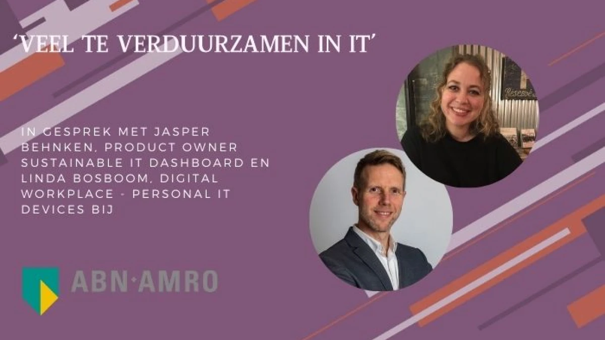 Het zijn voorbeelden van de vele aanpassingen die helpen om de IT-processen van ABN AMRO verder te verduurzamen, leggen Jasper Behnken, Product Owner Sustainable IT Dashboard en Linda Bosboom, Digital Workplace - Personal IT Devices van ABN AMRO uit. De doelstellingen zijn ambitieus, in 2025 moet de CO2-uitstoot van de IT-afdeling aanzienlijk zijn verminderd. Hoe krijgen ze dat voor elkaar?